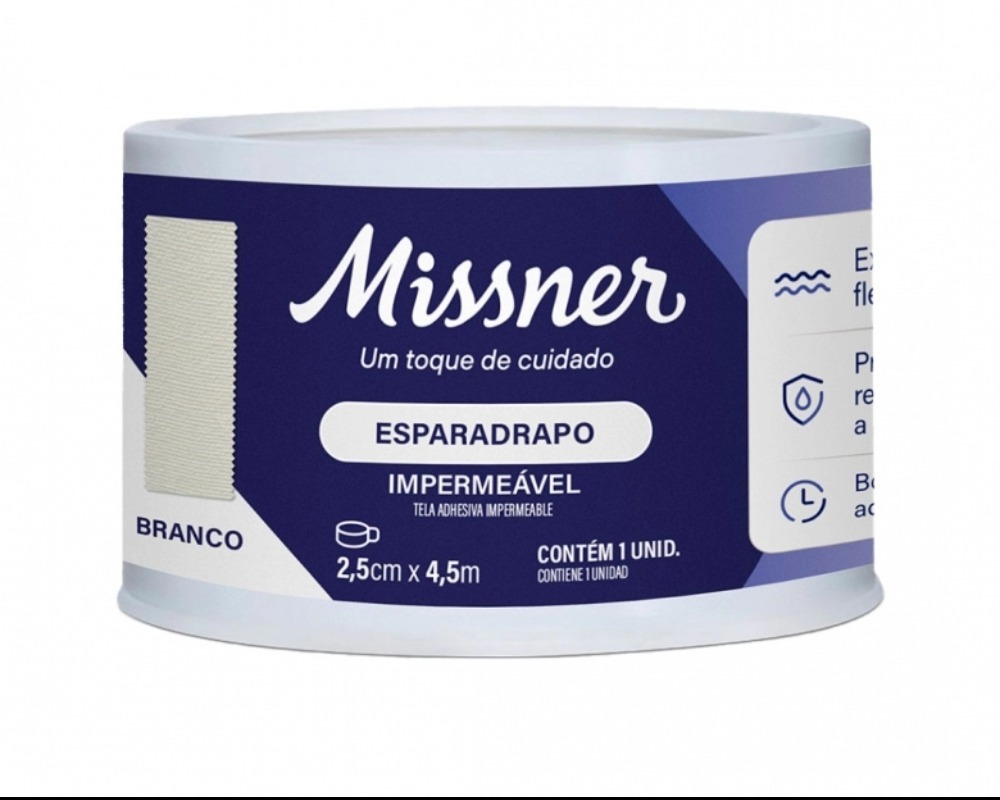 Esparadrapo Impermeável Missner branco, 1 unidade com 2,5cm x 4,5m